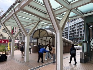 9時以降は全体的に落ち着いてくるものの、改札からのまとまった流れは引き続き多く、人通りが途切れることはほとんどありませんでした。10時頃になると集団の人数も減り、まばらな流れに変わっていきました。