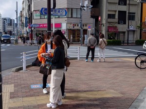 ピークは11:00〜12:30で、信号待ちにより10〜20人前後の集団が交差点で滞留し、効率的に配布を行うことができました。