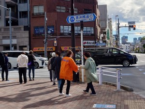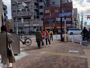 清澄白河駅三丁目の四角交差点付近で、2名体制で導線を挟みながら配布を行いました。