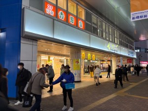 京成船橋駅にて物流企業のスタッフ募集に関するPR配布