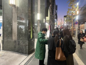 一方、芋洗い坂や西麻布エリアでは通行量が少なく、配布対象者も限定的でしたが、欅坂周辺ではイルミネーションによる交通規制が入るほど人通りが多く、対象者も非常に多い状況でした。
