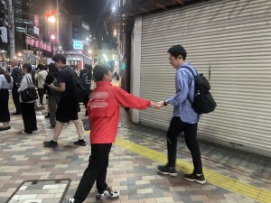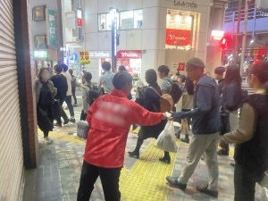 西新宿駅にてオンライン予備校のPR配布