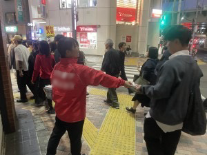 京成船橋駅にて物流企業のスタッフ募集に関するPR配布