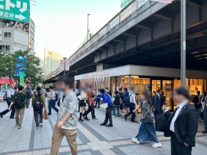 開始から終了まで、駅周辺は通行量が多く、雑多な人通りで常に混雑している状況でした。