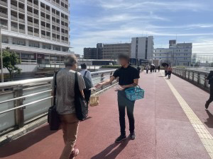通行人の反応としては、自ら「ください」と声をかけて受け取る方や、一度通り過ぎた後に戻って受け取る方も多く見られ、受け取ったティッシュを手に取り確認したり、興味を持って質問してくださる方もいらっしゃいました。特に30〜50代のサラリーマン層の受け取りが多く、確実にターゲット層へアプローチできたことがうかがえます。