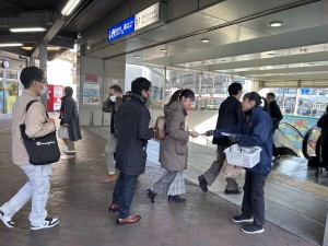 当日は周辺で街頭演説や募金活動が行われていましたが、通行量自体は終日安定しており、配布機会を十分に確保できる環境でした。