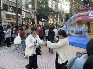 通行人の反応は非常に良好で、自ら受け取りに来る方、通過後に戻って受け取る方、興味を持って質問する方、グループで全員受け取る方、団扇を確認する方、団扇記載のQRコードを読み取る方など、多様な対応が見られました。また、記念撮影では家族連れや外国の方が中心となって撮影されました。