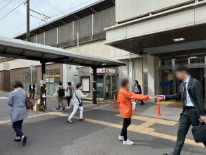前日同様、開始時から駅周辺の通行量は非常に多く、全体的には前日よりやや少なめでした。駅へ入る流れ・出て来る流れのどちらも途切れることが少なく、特に前半は学生が多数を占める状況でした。ピーク後は通行量が落ち着きましたが、常に一定の人通りがあり、安定した街頭配布環境となりました。