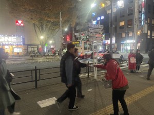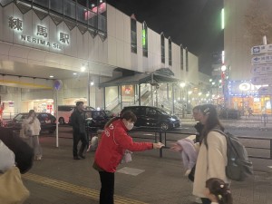 練馬駅にてカラオケ店のPR配布