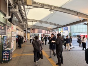 改札前の広場では待ち合わせ利用者も多く、時間帯によっては混雑する環境での実施となりました。