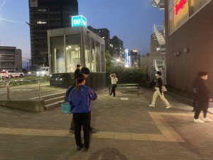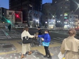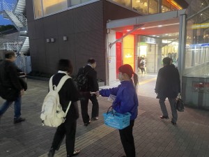 駒込駅にてスポーツクラブのPR配布